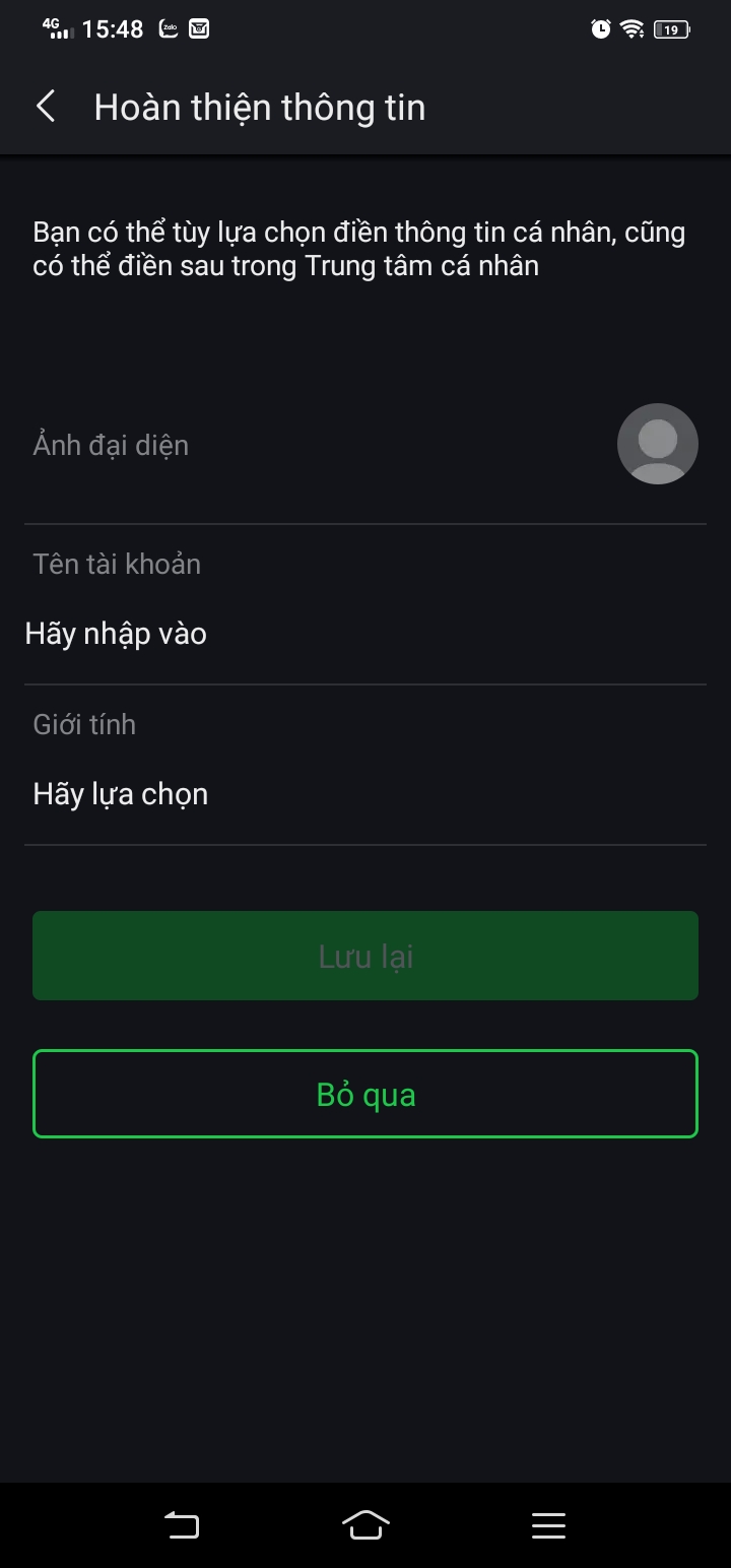 Bước 7: Điền tên tài khoản, giới tính, ảnh cá nhân là hoàn tất