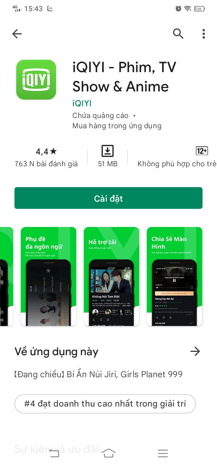 Vào CH play >> Tìm “iQIYI” >> Cài đặt