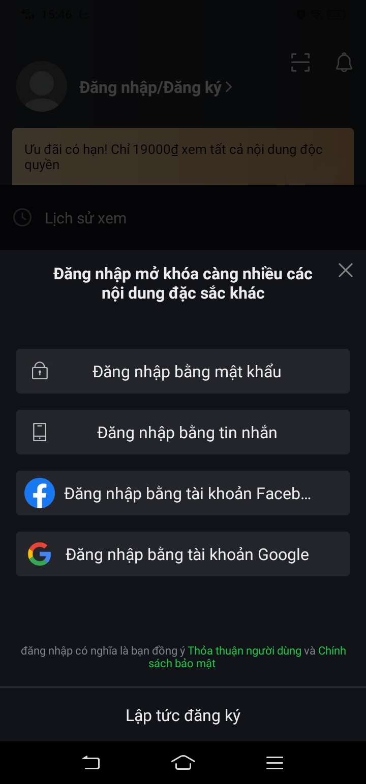 Bước 2: Bấm đăng ký/đăng nhập