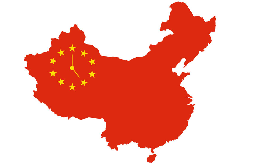 Lãnh thổ rộng lớn của Trung Quốc, được phân chia theo tiêu chuẩn quốc tế khi diện tích được chấp nhận có thể được chia thành năm múi giờ chính.