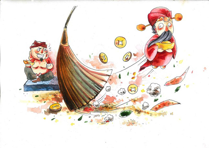 Trước lễ hội mùa xuân, mọi người đã quét dọn sạch sẽ nhà cửa. Đó là để quét sạch những điều không may mắn. Những ngày đầu năm mới, nó trở thành một điều cấm kỵ. Việc dọn dẹp hoặc vứt rác có thể cuốn đi những điều may mắn.